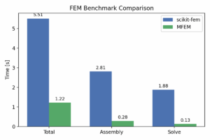 About Scikit-fem is an excellent library. Since it is written in pure Python, it is highly stable...